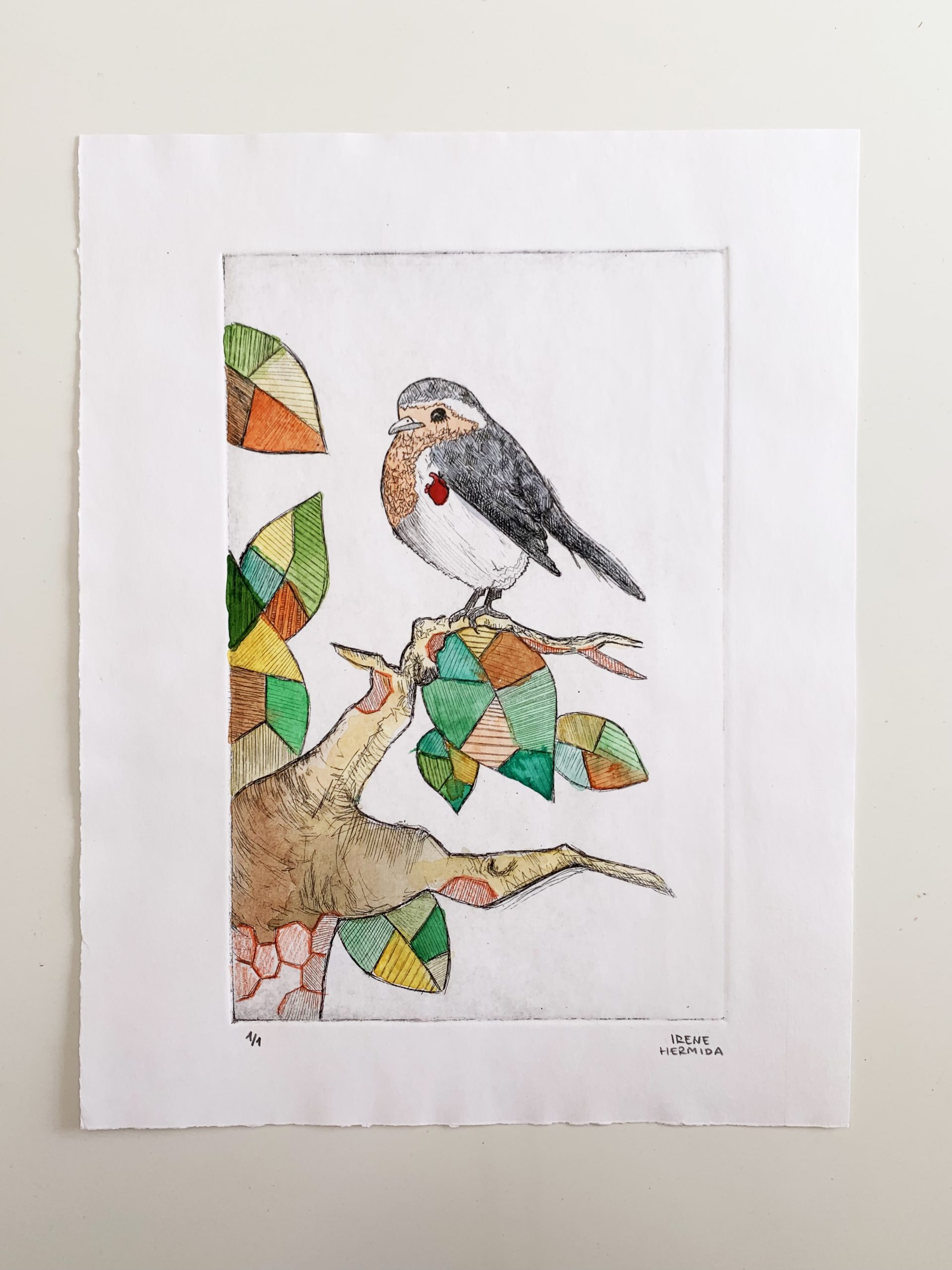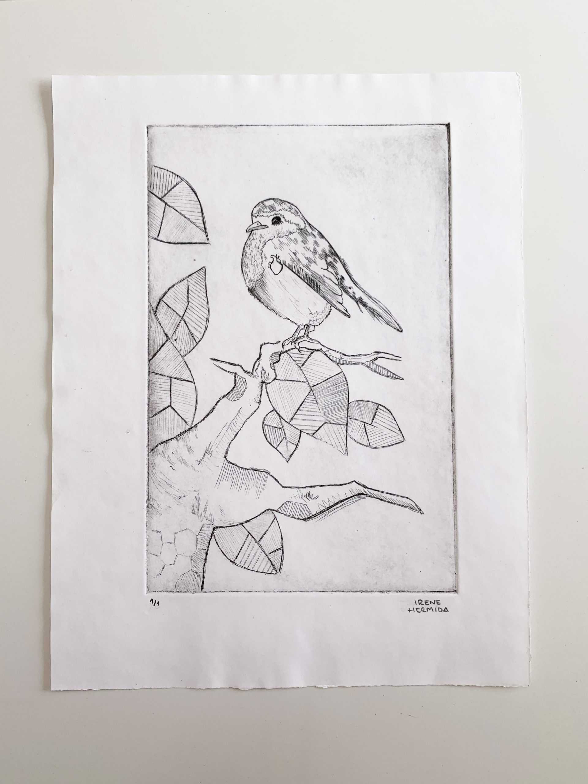 Grabado original diseñado y estampado por Irene Hermida. Tinta sobre papel de 45,5×30, 25×32,5 o 15x15cm. Puedes pedir el grabado enmarcado con un marco de madera negro o blanco y metacrilato transparente. El grabado se envía perfectamente embalado con plástico de burbujas y envuelto en papel kraft, con un packaging a conjunto con la marca. Incluye un Certificado de Autenticidad de la obra, una tarjeta de información y una pequeña postal de regalo.